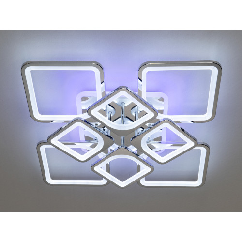 Світлодіодна люстра має декілька режимів: холодний 6400К, нейтральний 4500К, теплий 2700К, синє LED підсвічування, поєднаний режим - будь основне світло плюс світлодіодне підсвічування - все залежить від вашого настрою!
