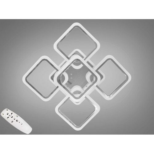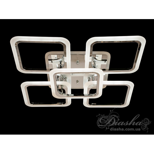 Нова люстра з фото - стельова лед люстра в спальню від ТМ "Діаша", яка привертає увагу своїм ультрамодерним дизайном та яскравим виразом хай-тек естетики. Діодна люстра 2024 складається з п'яти квадратних світлових елементів з округлими краями, розміщених на різних рівнях та симетрично навколо центральної точки. Кожен квадрат виконаний в кольорі хрому, що додає інтер'єру сучасного вигляду та елегантності. Квадратна плоска лед люстра з лед підсвіткою, яка створює ефект світлового ореолу, що м'яко розливається у просторі, надаючи кімнаті глибини та витонченості.
