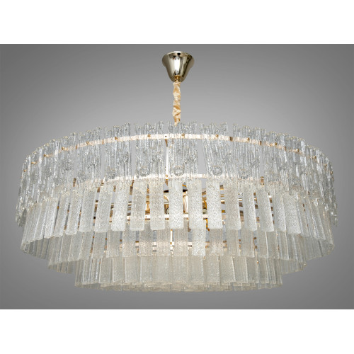 Опис Велична люстра підвіс зі скляними пелюстками на 18 ламп, колір золото