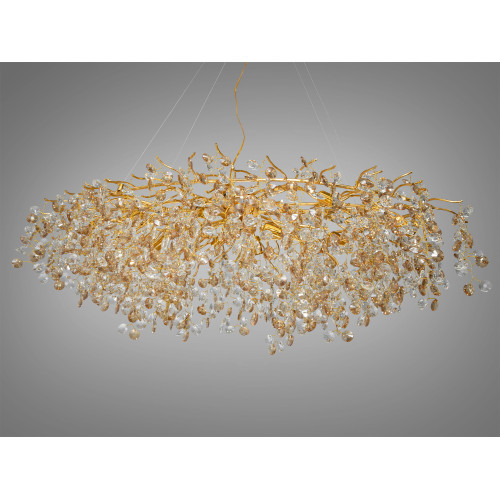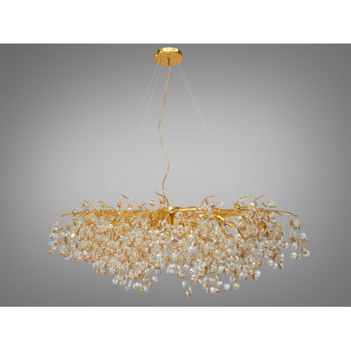 Основні характеристики Багата кришталева люстра на тросах витягнутої форми, 12 ламп, золото