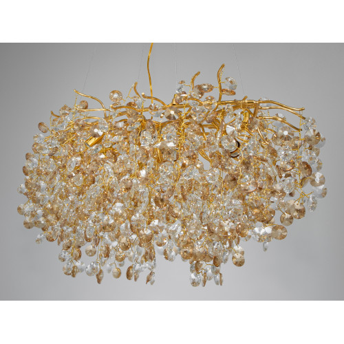 Багата кришталева люстра на тросах витягнутої форми, 12 ламп, золото